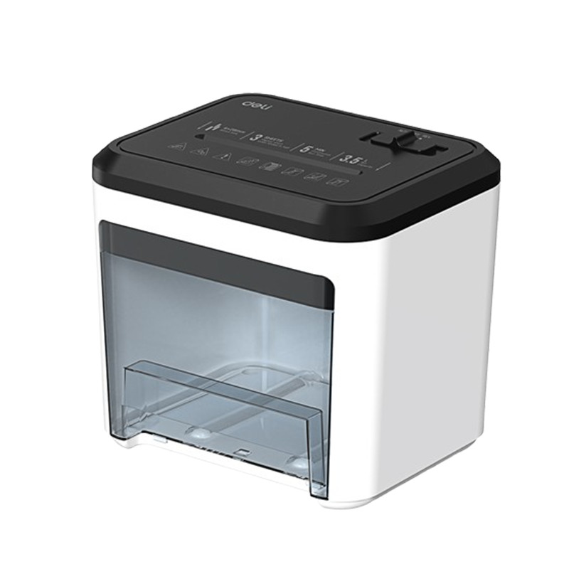 The Deli‑ET002 is a compact desktop paper shredder engineered for personal and small‑office environments. Equipped with German P‑4 cross‑cut blades, it delivers secure shredding of sensitive documents into 4 × 28 mm particles. Its motor supports up to 5 minutes of continuous operation, while an easy‑to‑use pull‑out bin (5 L) with a clear viewing window ensures you know when it’s time to empty. The unit starts and stops automatically as paper is fed, handles staples and paper clips without jamming, and runs at a low noise level—ideal for maintaining productivity without distraction. Available at Arshi Computer.