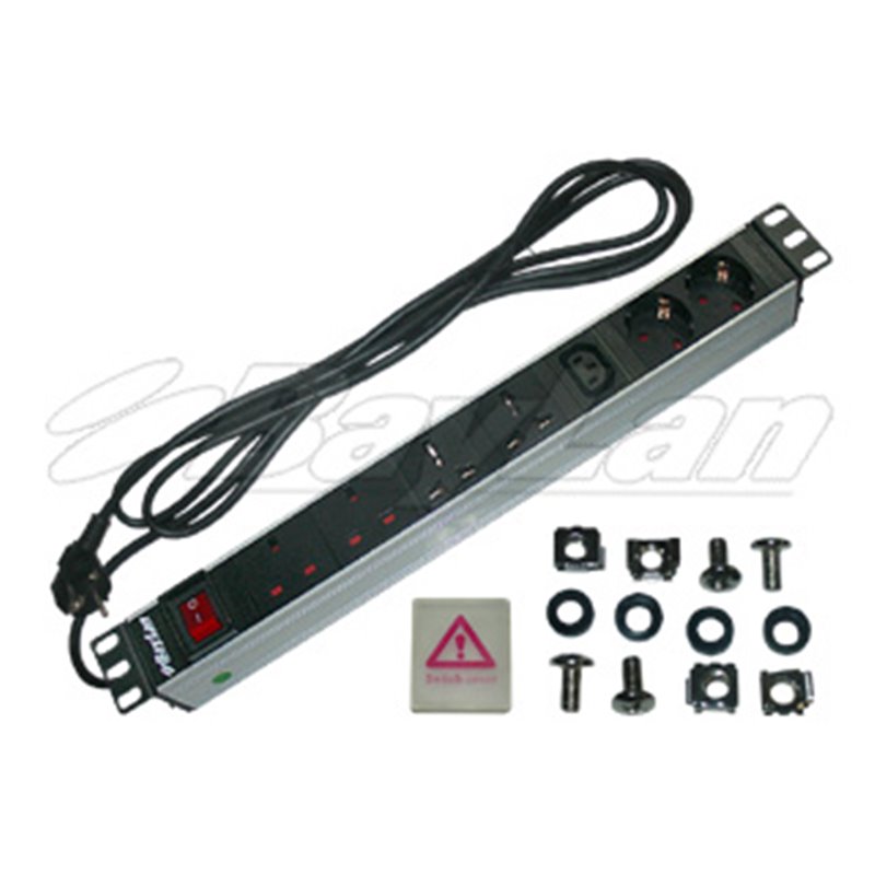 PDU 19" RM 1U Multi 7 Sockets (2*Europe+2*Universal+1*IEC C13+2*German) w/Lighted Master Switch+Safety Cover German Plug 16A/3840WRecipient :